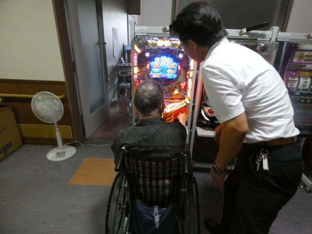 ふくじゅでは、デイケア、入所、ショートのご利用時にパチンコを打つことができます。