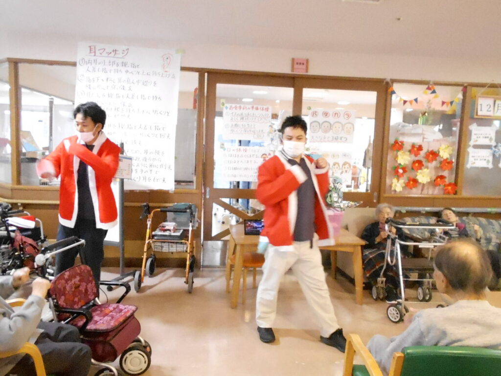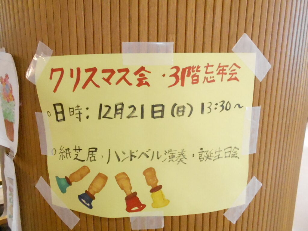 令和7年12月21日(日)、3階認知症専門棟にて12月の行事としてクリスマス会と忘年会を開催しました。
