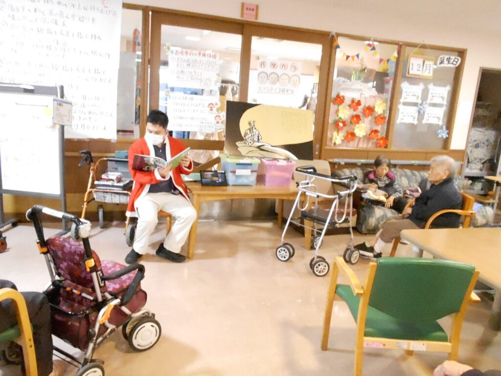読み聞かせや「きよしのズンドコ節」を踊ったり、職員によるギター演奏やハンドベルの演奏など、盛りだくさんの内容でご利用者の皆さまに楽しんでいただくことができました。